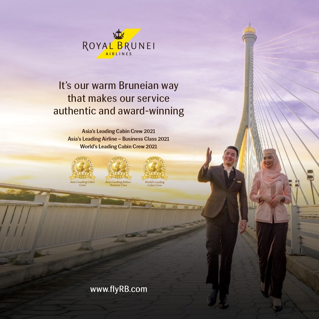 Presente come Ospite d’Onore alla celebrazione virtuale era Yang Mulia Dato Seri Paduka Dr. Awang Hj Abdul Manaf Bin Hj Metussin, Vice Ministro delle Finanze e dell’Economia (Economia) e Presidente di RB che ha detto “A nome del Consiglio di Amministrazione, congratulazioni al nostro incredibile equipaggio, l’amministrazione dell’equipaggio di cabina e a tutto Team RB. Il 2022 sarà un anno impegnativo, ma non ho dubbi che Royal Brunei Airlines e il miglior equipaggio di cabina al mondo 2021 affronteranno qualsiasi sfida con il loro passo. Vincere il titolo due volte di seguito è una testimonianza del riconoscimento della nostra compagnia aerea boutique per l’ospitalità e il servizio di prim’ordine basati sui valori del Brunei. Per questo, in qualità di Presidente di Royal Brunei Airlines, sono sinceramente molto orgoglioso”