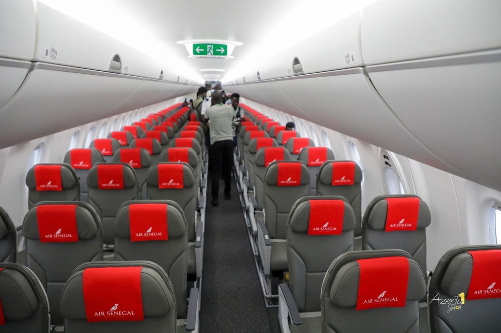 Questi sono gli interni dell’Airbus 220-300 della Air Senegal arrivato nuovo di fabbrica in questi giorni a Dakar. L’aereo porta il none di Niokolo Koba.