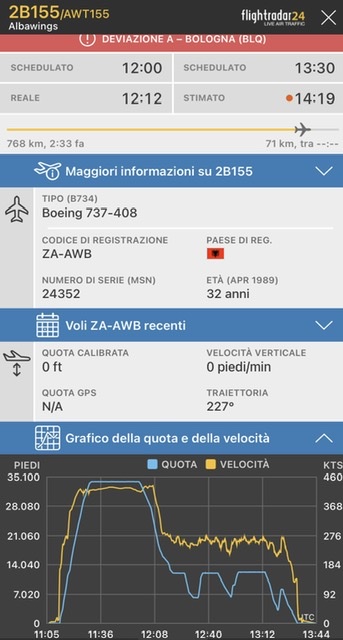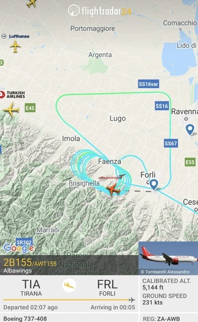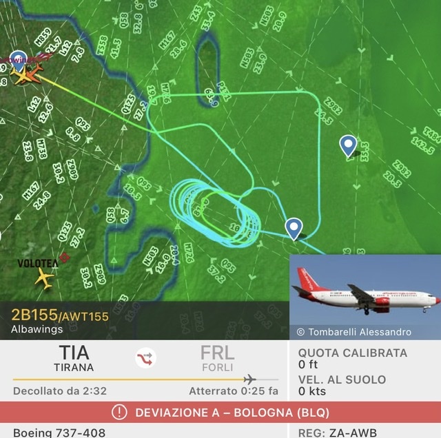 Un volo Albawings da Tirana a Forli , dopo oltre un ora di holding e’ invece atterrato a Bologna. La fonte e’ VolaBologna.