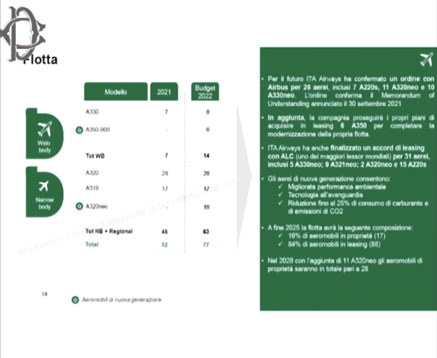 Nell’ultimo rigo in basso a destra e’ riportato che 11 A320neo, quelli dell’ordine piazzato a Airbus, arriveranno nel 2028.