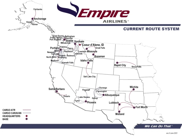 L’acquisizione espande l’impronta di Empire Holdings, Inc., che ha sede a Hayden, Idaho, e possiede Empire Airlines, Empire Aerospace e Empire Unmanned. Empire Airlines, fondata nel 1977, opera per FedEx su 16 basi in Idaho, Montana, Oregon, Washington, Arizona, Alaska, California, Oklahoma, South Dakota, New Mexico e Kansas. Empire Airlines è una compagnia aerea FedEx Feeder dal 1988.