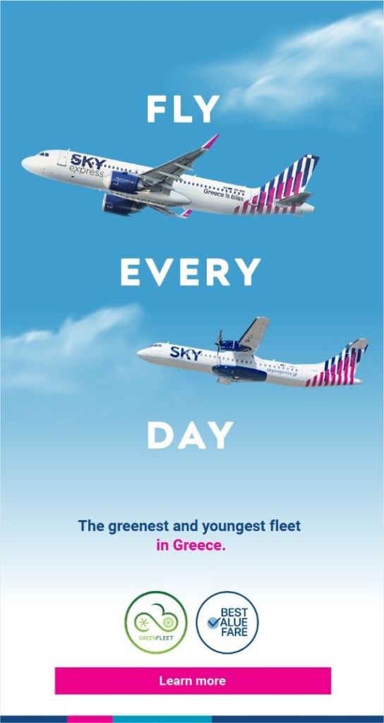 L’offerta si applica sui voli da Roma ad Atene e per tutte le destinazioni servite da SKY express in coincidenza con il volo da Roma per Atene.