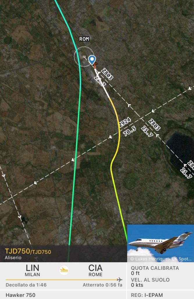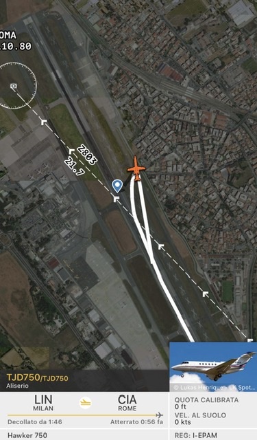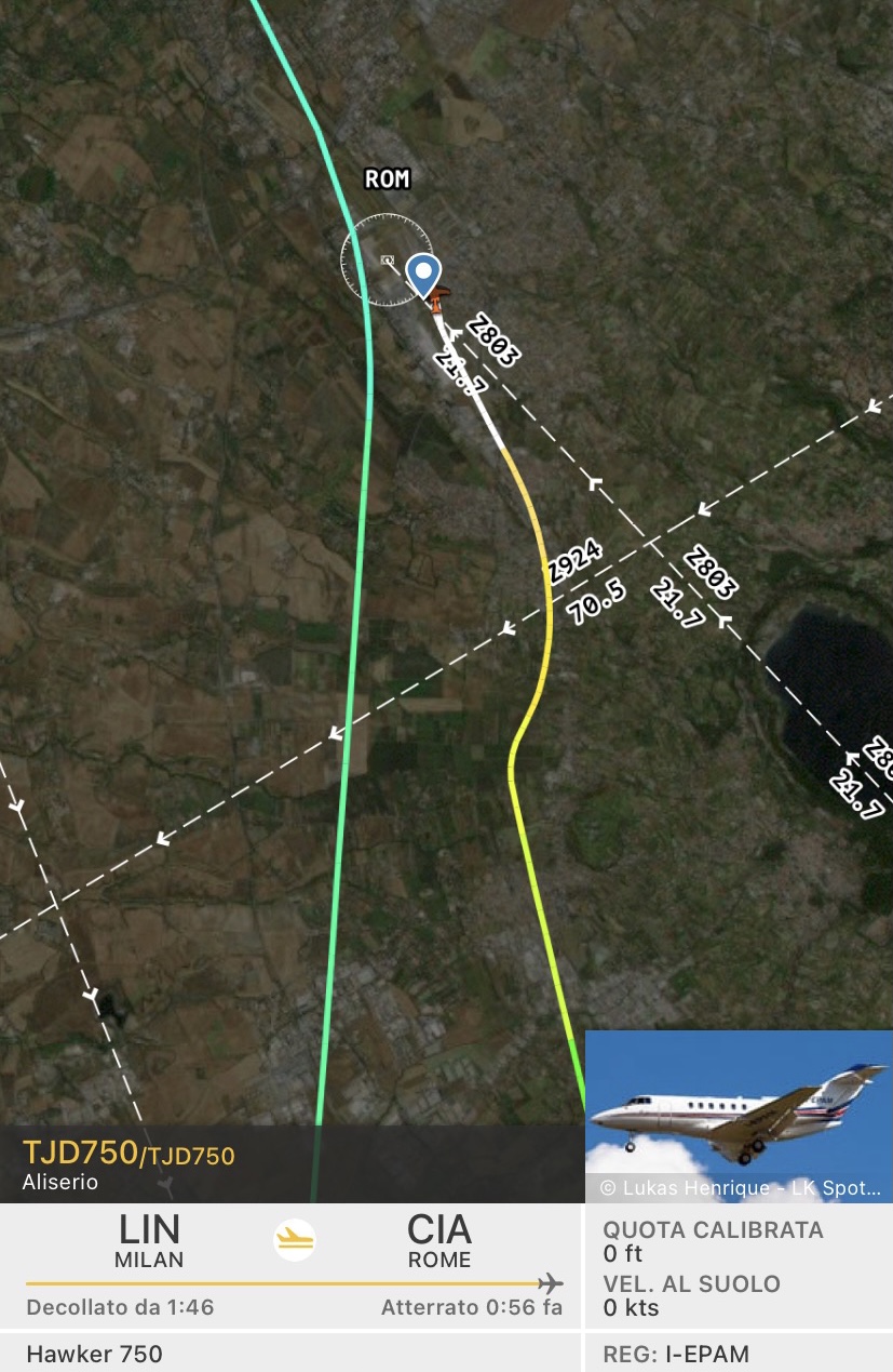 Questo Hawker 750 I-EPAM della Aliserio e’ atterrato a Roma Ciampino giusto un ora fa e l’ADSB e’ tuttora acceso.