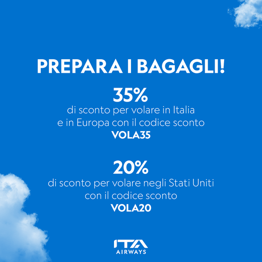 35% DI SCONTO PER VOLARE IN ITALIA E IN EUROPA