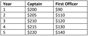 La paga oraria del Capitano del primo anno aumenta da $ 135 a $ 200. Con la nuova scala, a cinque anni di servizio Avelo Captains guadagnerà $ 220 l’ora. La tariffa oraria del primo anno per i Primi Ufficiali aumenta da $ 70 a $ 90 con una tariffa oraria di $ 140 a cinque anni di servizio.