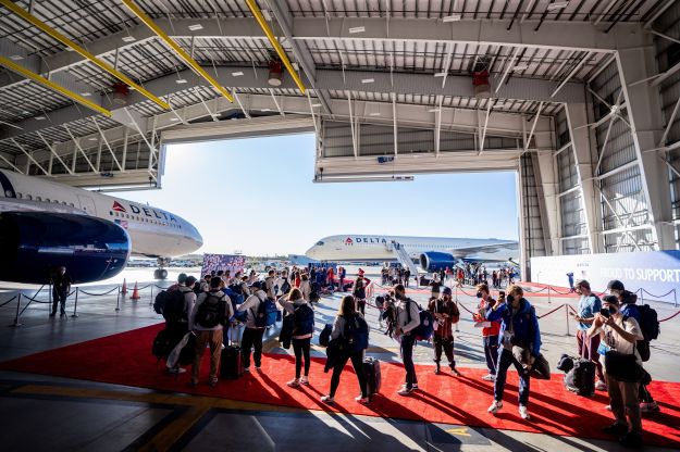 Foto: Delta Air Lines. All’evento di commiato LAX ospitato da Delta, gli atleti hanno camminato su un tappeto rosso e sono saliti a bordo del loro aereo in un hangar privato.