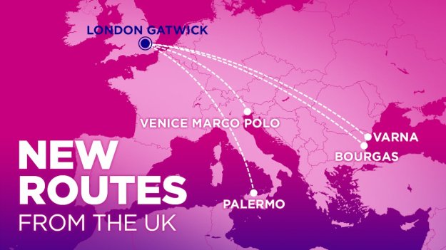 Ora la compagnia aerea ha anche annunciato nuove rotte da LGW verso Bourgas, Palermo, Varna e Venezia.
