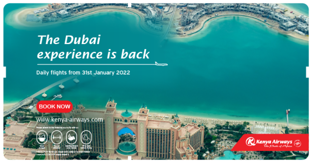 Kenya Airways (KQ) ha annunciato la ripresa dei voli giornalieri per Dubai a partire dal 31 gennaio 2022.