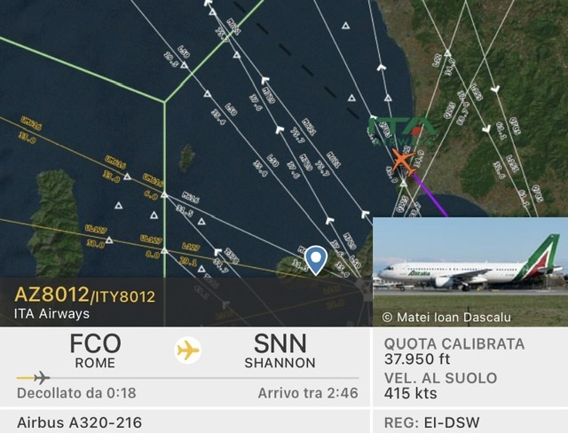Con il numero di volo AZ8012 e’ decollato da Roma alle 8:19 da Roma Fiumicino l’A320-216 EI-DSW, il primo degli A320 in livrea del periodo Etihad Airways. Il velivolo ha destinazione Shannon.