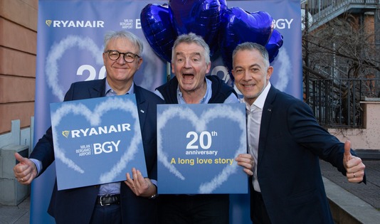In questi 20 anni, Ryanair ha investito molto nella sua presenza e nelle operazioni a Milano Bergamo, aumentando sia il numero di aeromobili basati che le rotte internazionali/domestiche, rafforzando il ruolo di Bergamo come principale base italiana di Ryanair. Dai 34 milioni di passeggeri trasportati da e per l’aeroporto di Milano Bergamo nei primi dieci anni di attività, Ryanair ha raggiunto a fine 2019 un totale di 110 milioni di passeggeri.