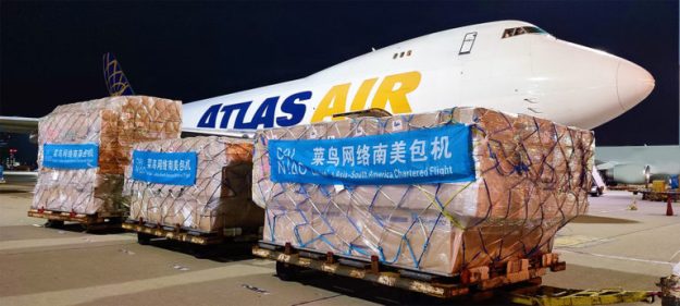 Nel novembre 2021, Cainiao ha ampliato la sua partnership con Atlas Air per includere voli charter giornalieri operati tra Cina e America Latina in risposta alla crescita del commercio transfrontaliero tra Cina e America Latina.