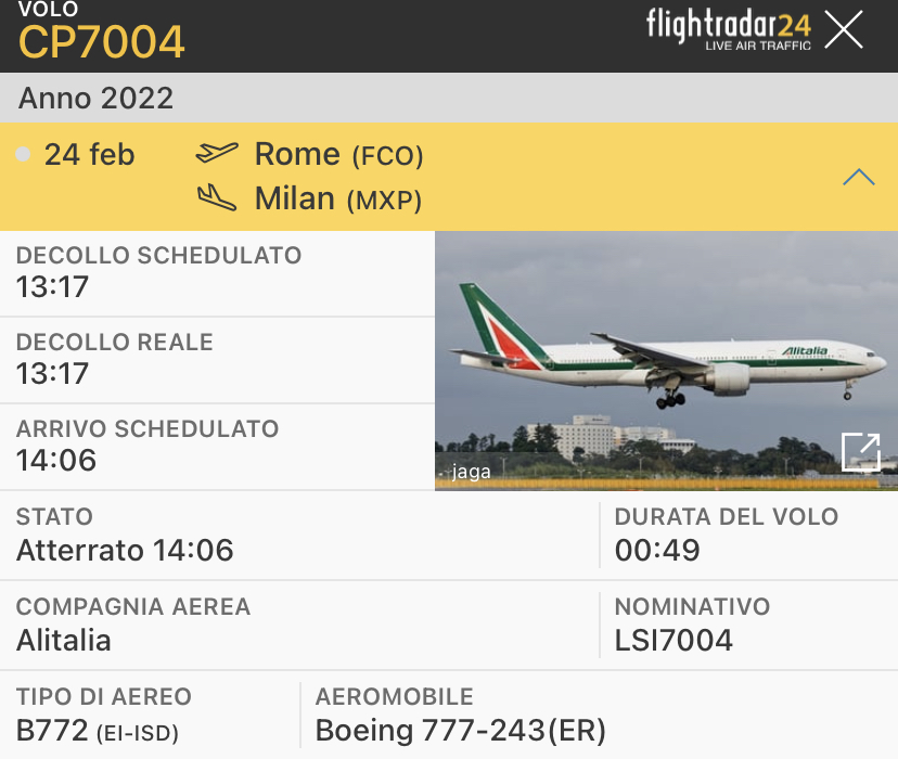 Poco piu’ di due ore fa a Milano Malpensa e’ arrivato il B777-243ER EI-ISD ora in servizio alla AlisCargo Airlines , anche se i colori sono ancora quelli di Alitalia.