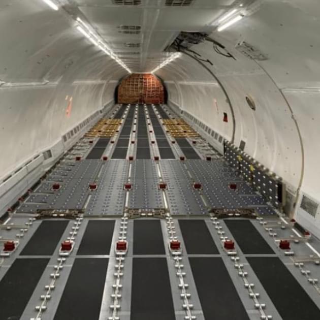 L’aeromobile e’ l’A321P2F con capacità di massimo 28000kg. 14 pallets possono essere caricati sul piano principale e 10 nelle due stive inferiori.