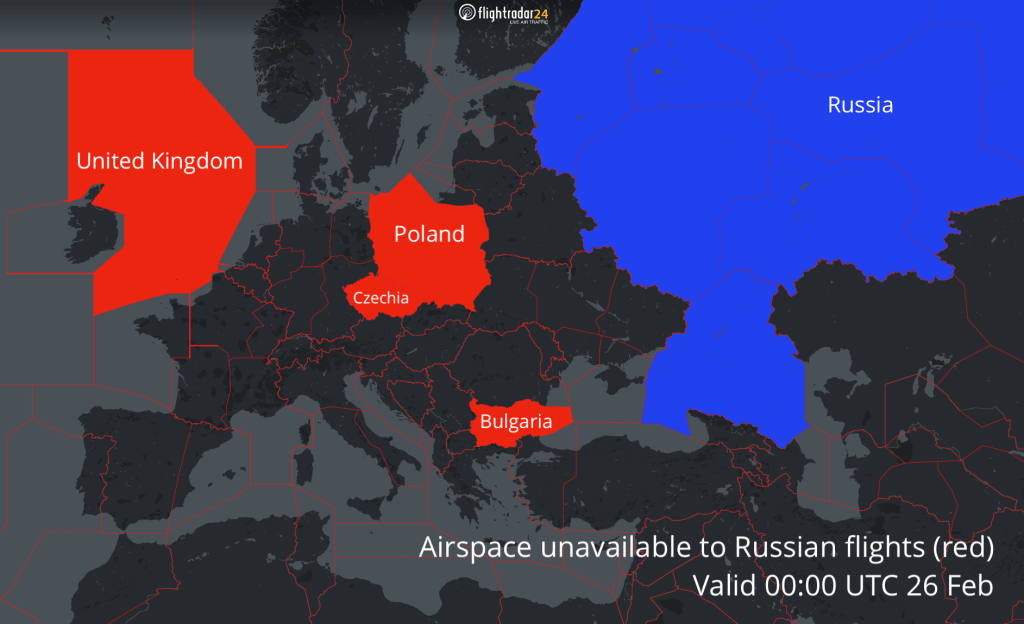 Non solo Regno Unito e Polonia, pure Bulgaria e Repubblica Ceca hanno chiuso lo spazio aereo ai voli russi