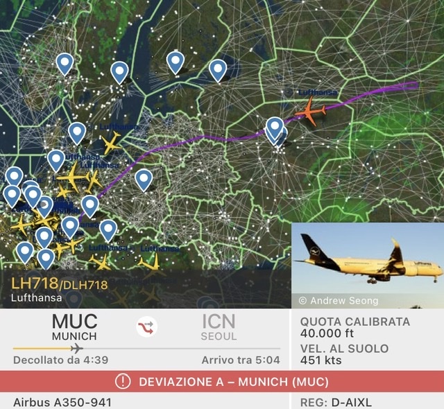 In particolare il volo LH718 da Monaco a Seoul era gia’ sugli Urali e ha invertito la rotta puntando di nuovo verso Monaco.