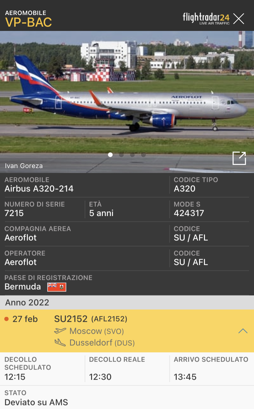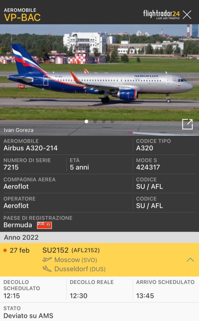 Oltre all’aereo Aeroflot bloccato a Ginevra, c’e’ anche un A320 a Amsterdam, atterrato nell’aeroporto olandese, perché con lo spazio aereo tedesco prossimo al blocco ha scelto quello dei Paesi Bassi, ma poi e’ stato chiuso.