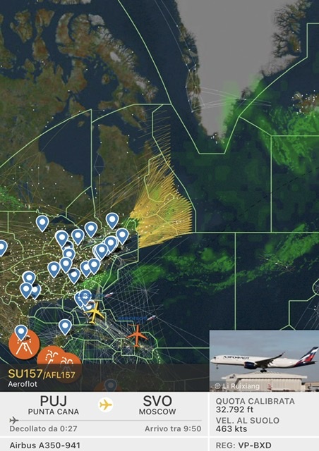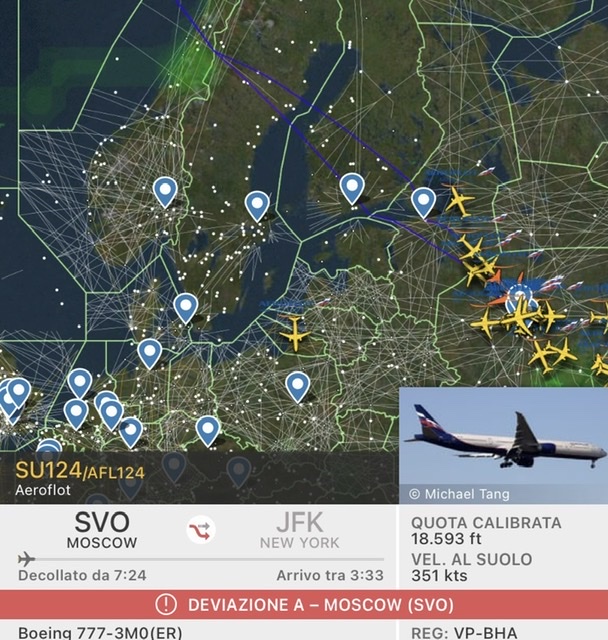 Poi il Mosca – New York JFK sul Mar del Nord ha fatto dietro-front e a breve atterrera’ a Mosca.