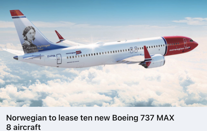 10 Boeing 737-8 entreranno nel futuro in flotta con Norwegian. E’ l’esito di un accordo avvenuto tra la compagnia low cost norvegese e il lessor AerCap.