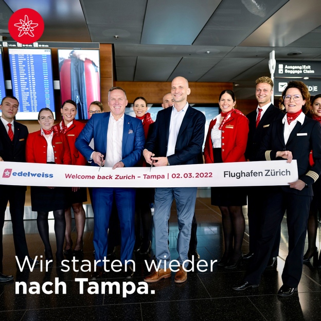 Dopo una pausa di due anni, la principale compagnia aerea svizzera per il tempo libero Edelweiss ha ripreso i voli diretti per il Nord America mercoledì 2 marzo. Tampa Bay (Florida) è la prima destinazione di vacanza servita il mercoledì e il venerdì.