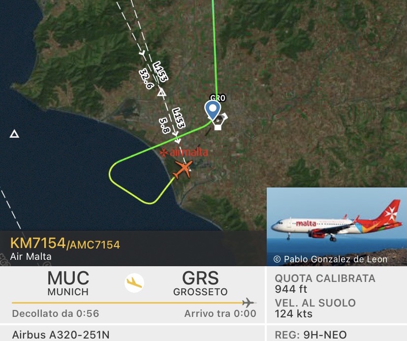 aeroporti, compagnie aeree Air Malta atterra a Grosseto con A320neo Pubblicato da Italiavola il 7 marzo 2022 E’ un po’ insolito questo volo charter da Monaco per Grosseto operato da Air Malta. E’ un A320-251N 9H-NEO a effettuare il collegamento. L’aereo e’ giunto ferry flight stamani a Monaco proveniente da Malta. Condividi: Fai clic per condividere su Facebook (Si apre in una nuova finestra) Facebook Fai clic qui per condividere su LinkedIn (Si apre in una nuova finestra) LinkedIn Fai clic qui per condividere su Reddit (Si apre in una nuova finestra) Reddit Fai clic qui per condividere su Pinterest (Si apre in una nuova finestra) Pinterest Fai clic qui per condividere su Tumblr (Si apre in una nuova finestra) Tumblr Fai clic per condividere su X (Si apre in una nuova finestra) X Mi piace Caricamento... Correlati