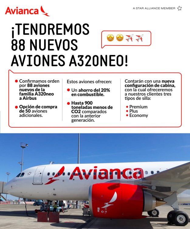 In linea con il suo piano industriale che prevede l’operazione di oltre 200 rotte per lo più point-to-point e di oltre 130 aeromobili entro il 2025, Avianca ha confermato il suo impegno a ordinare 88 nuovi aeromobili della famiglia A320neo dal produttore europeo Airbus. L’accordo prevede anche un’opzione di acquisto per ulteriori 50 aeromobili.