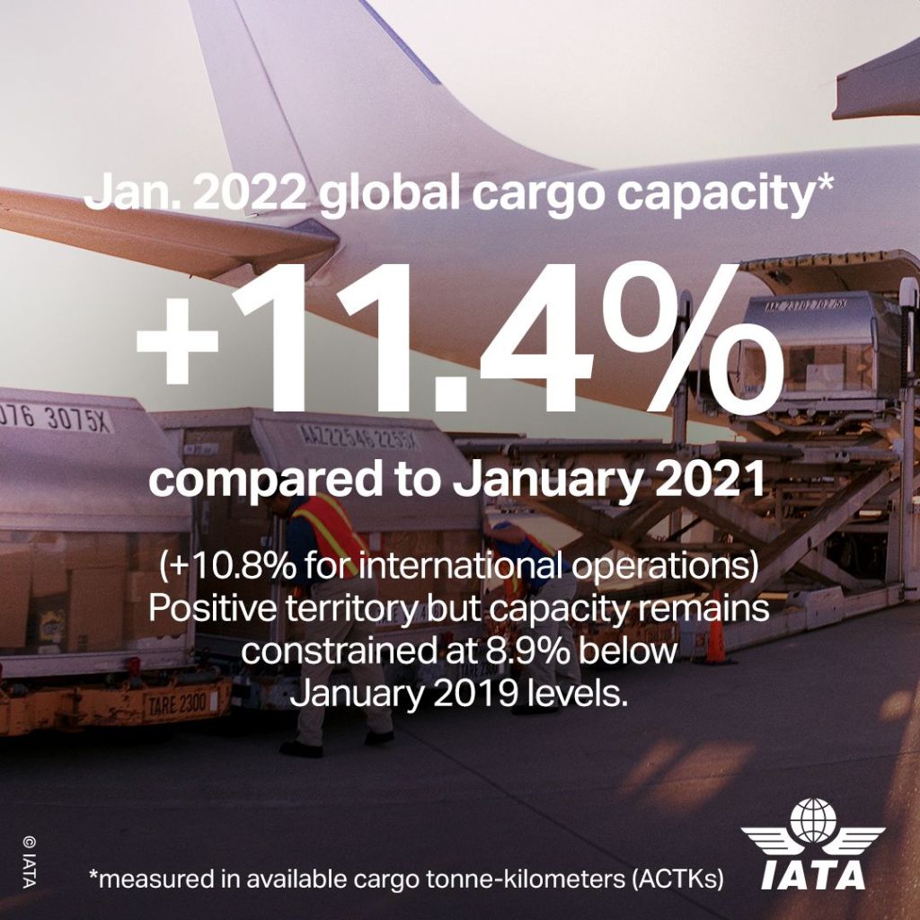 La capacità è stata dell’11,4% superiore a gennaio 2021 (10,8% per le operazioni internazionali). Sebbene questo sia in territorio positivo, rispetto ai livelli pre-COVID-19, la capacità rimane limitata, l’8,9% al di sotto dei livelli di gennaio 2019.