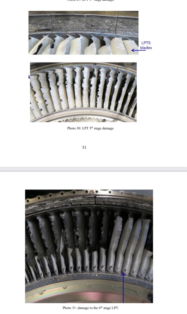 La causa e’ stata generata dalla progressiva fatica e corrosione all’IPTB numero 79. La separazione di parte di questo componente ha comportato il problema di poi aver coinvolto altri componenti poi fuoriusciti, i quali hanno colpito parti esterne dell’aereo e precipitati a terra.