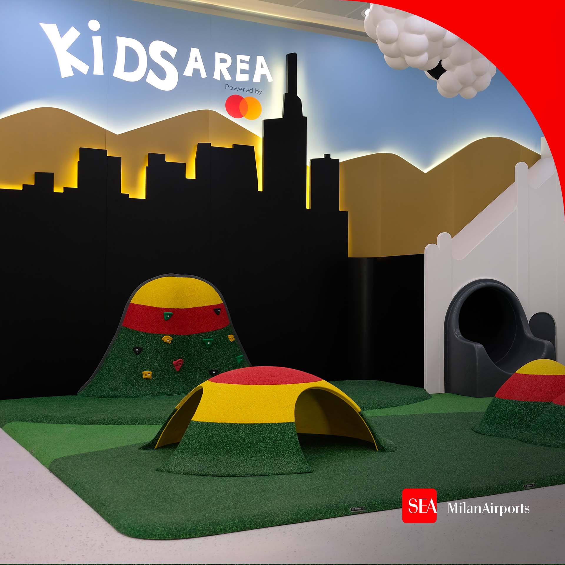 Un’area gioco attrezzata, sponsorizzata da @mastercarditalia e ideata per rendere l’attesa del volo un’esperienza piacevole anche per i più piccoli. ![]()