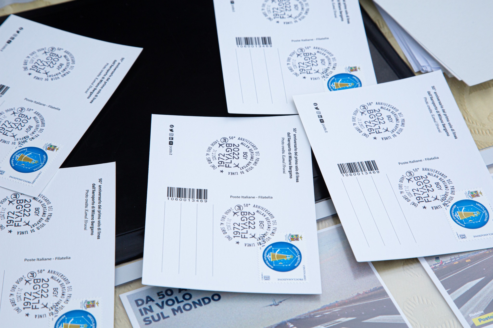 Nell’occasione,SACBO in collaborazione con Poste Italiane ha realizzato una cartolina filatelica in edizione, che riportala scritta:“Da 50 anni in volo sul mondo” e l’immagine della pista di volo con un aereo in decollo, scatto fotografico di Kamal Haroui.