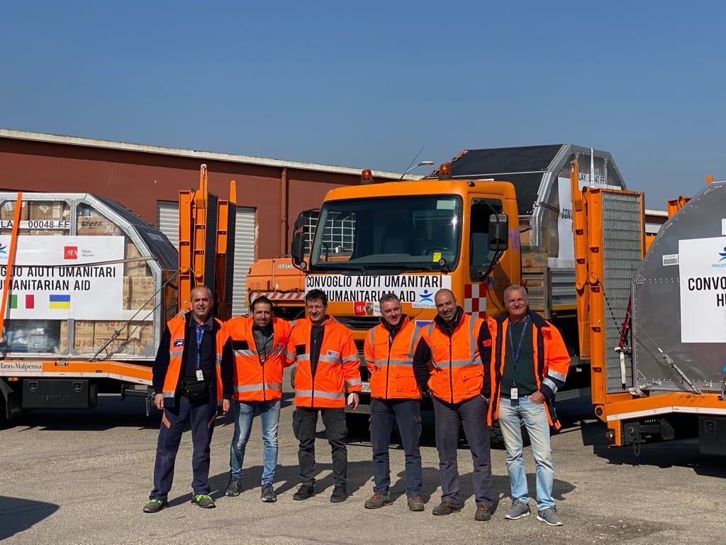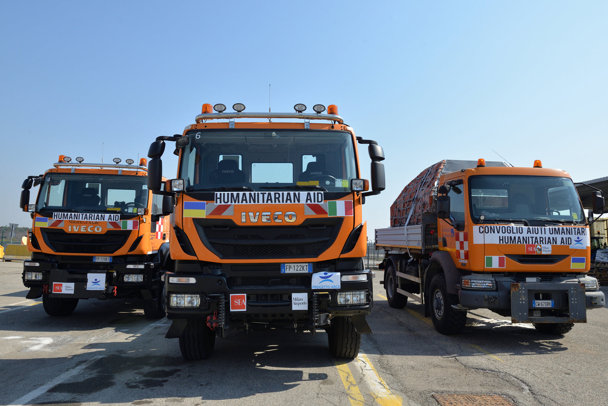 La prima spedizione è partita ieri sera dall’aeroporto di Milano Malpensa con 4 mezzi, 3 camion e 1 monovolume e con 11 dipendenti SEA che percorreranno quasi 4.000 km, 1.900 km per tratta, per giungere a Siret al confine fra Romania e Ucraina, dove saranno consegnati alimenti, vestiario e beni di prima necessità raccolti dalla Fondazione Progetto Arca a Milano. I lavori di carico della merce si sono svolti nella giornata di ieri. Sui 3 camion sono stati caricati 150 bancali per un totale di circa 50 tonnellate di merci. Il viaggio durerà circa 3 giorni.