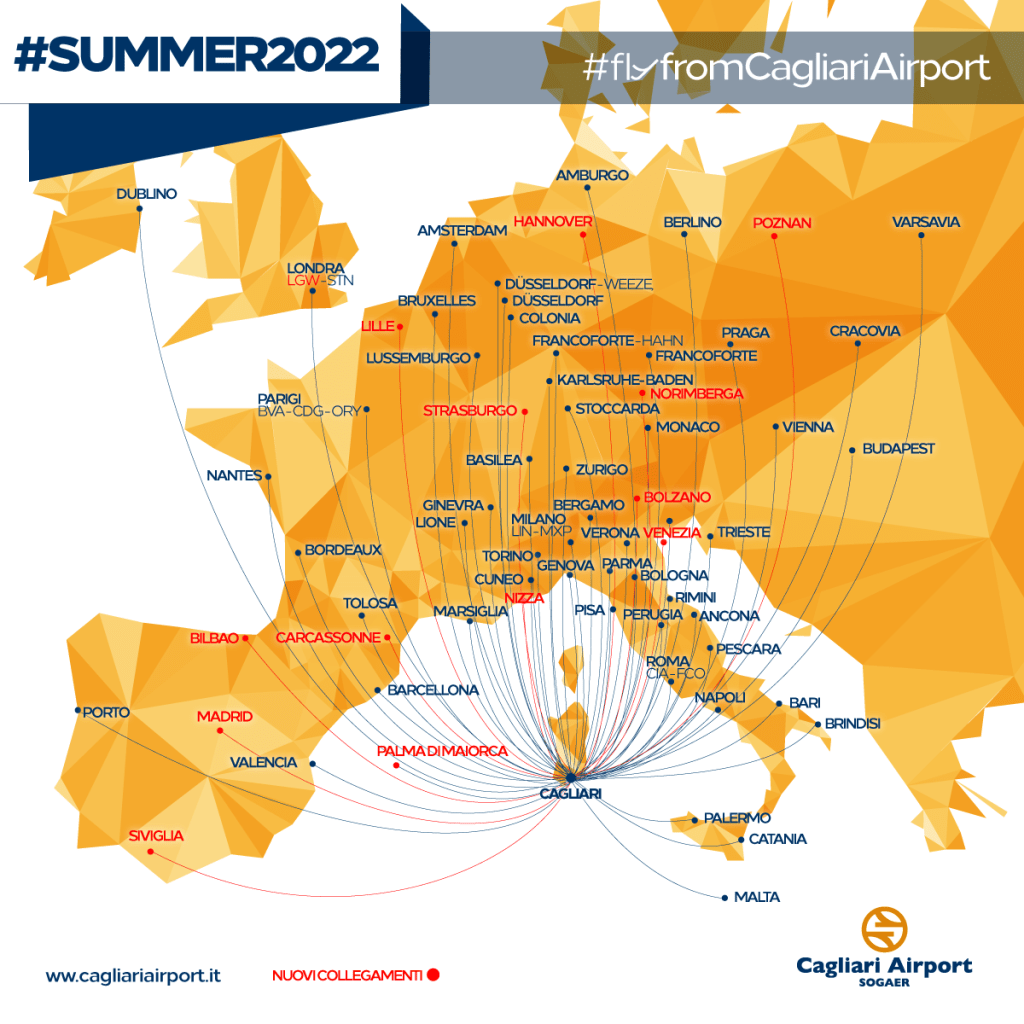 Renato Branca, amministratore delegato SOGAER, ha dichiarato: “Dopo aver chiuso il 2021 in netta ripresa registrando il 56% di passeggeri in più rispetto al 2020, abbiamo consolidato il trend di crescita nei primi mesi del 2022 grazie all’attenta programmazione delle rotte invernali. Ora, lo scalo di Cagliari si prepara a un’estate in linea con i livelli di traffico pre-pandemici, se non addirittura superiore, compatibilmente con l’evoluzione degli scenari geopolitici attuali”. Network Summer 2022