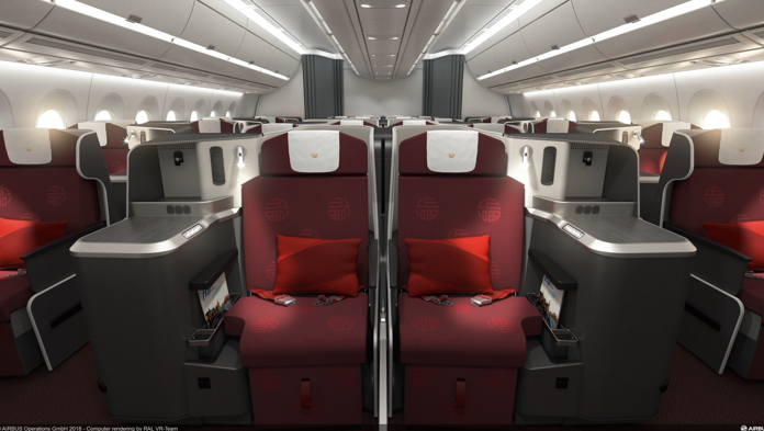 Gli interni del velivolo sono ancora quelli di Hong Kong Airlines