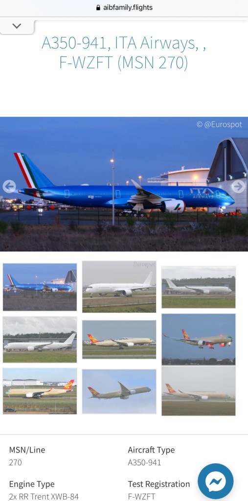 Ieri sera e’ comparso il primo A350-941 per ITA Airways completamente nei suoi colori sociali.