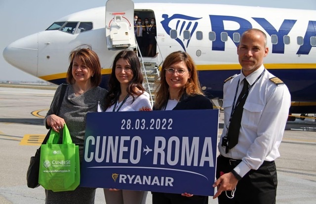 I primi passeggeri si imbarcano sul volo Ryanair che ora collega Cuneo con Roma.