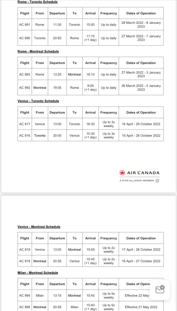 Air Canada ha ripreso i servizi senza scalo tra l’Italia e il Canada. Il servizio stagionale della compagnia aerea Roma-Fiumicino e Toronto opererà dal 28 marzo 2022 all’8 gennaio 2023, mentre il servizio stagionale Roma-Fiumicino e Montreal opererà dal 27 marzo 2022 al 3 gennaio 2023. Entrambi i servizi opereranno tutti i giorni durante il picco estivo.