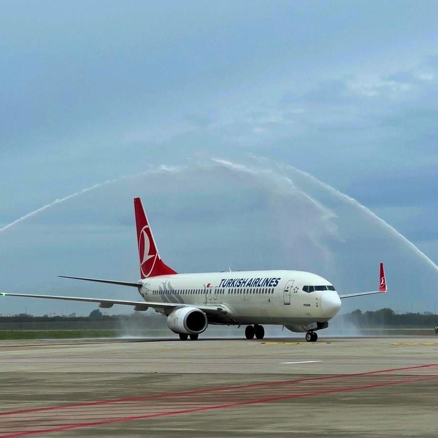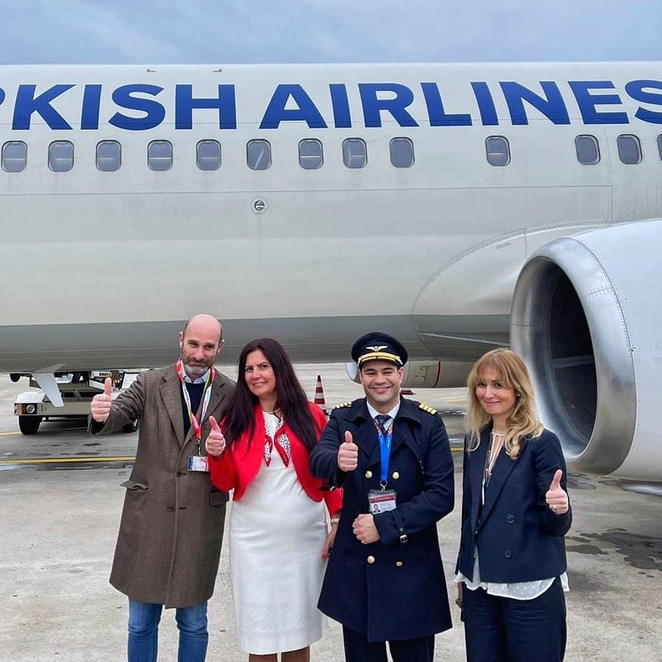 Con il water cannon salute dei Vigili del Fuoco, a Bari nella primo mattino di ieri si e’ celebrato il ritorno dei voli diretti Turkish Airlines da Istanbul.