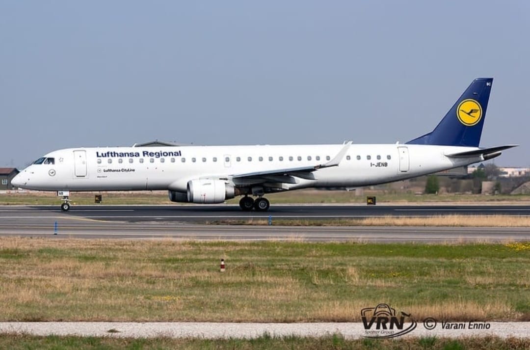 Ieri il velivolo Embraer E195 I-JENB ancora con la livrea Lufthansa Regional e’ partito da Verona von destinazione East Midlands , dove ricevera’ la livrea Air Dolomiti.