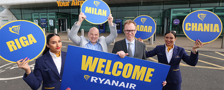 Da oggi, Ryanair opererà un totale di 19 rotte dal nostro aeroporto, comprese le nuovissime destinazioni di Zara in Croazia, Chania a Creta, Milano in Italia e Riga in Lettonia. Non vediamo l’ora di accogliere ancora più passeggeri Ryanair attraverso le nostre porte quest’estate”.