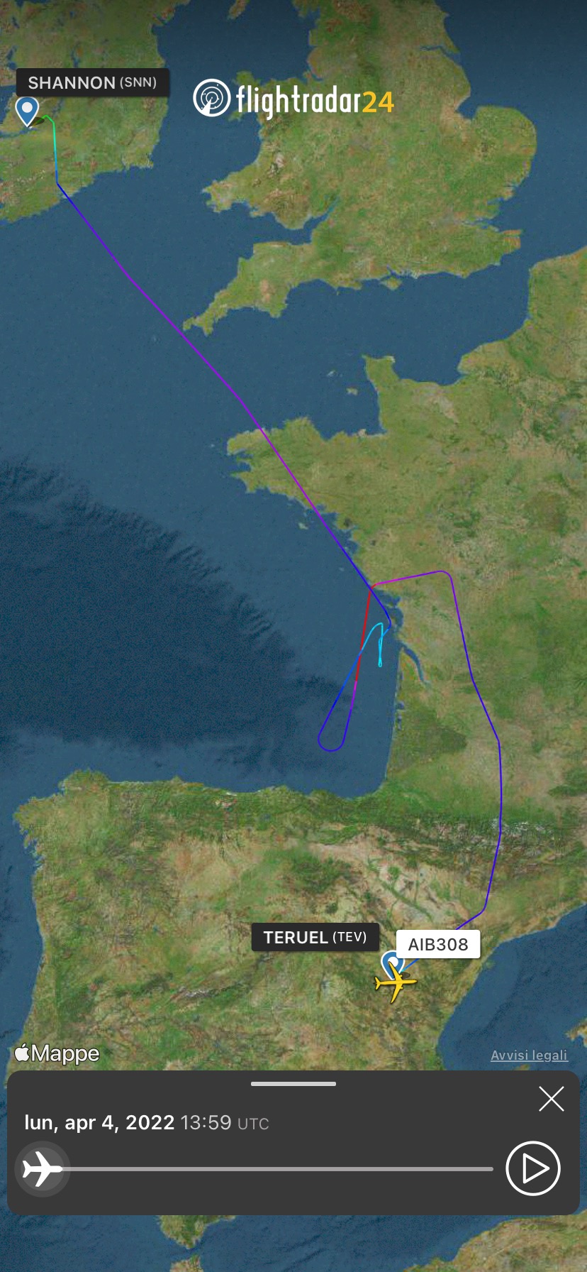 Da bianco come un lenzuolo a azzurro nella livrea ITA Airways. Questo A350-941 era in storage a Teruel in Spagna e ha effettuato un volo di verifica/trasferimento in Irlanda alla IAC – International Aerospace Coatings. Ha utilizzato il call sign della Airbus , AIB308. I numeri si riferiscono sl msn del velivolo.