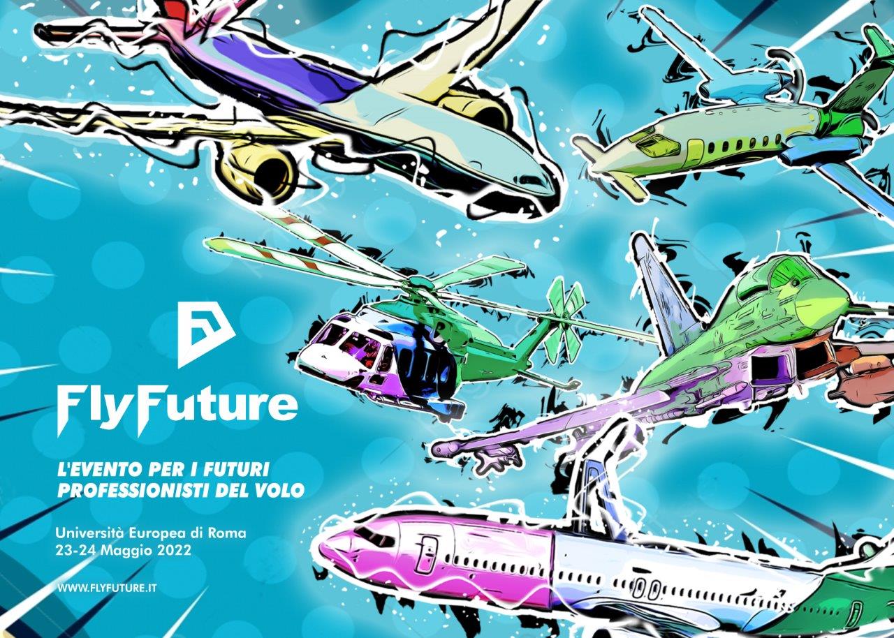 Mancano solo sei settimane alla prima edizione di “Fly Future”, l’evento nazionale di informazione e orientamento per gli appassionati del volo e per coloro che, soprattutto giovani, intendano trovare nel mondo dell’aviazione e del trasporto aereo un’opportunità di lavoro e di carriera. Questo evento, organizzato dall’associazione Ifimedia e da Mediarkè, si svolgerà in presenza nei giorni 23 e 24 maggio prossimi presso l’Università Europea di Roma (via degli Aldobrandeschi 190). In vista di questo appuntamento, è stata presentata la locandina ufficiale della manifestazione. L’immagine – realizzata dallo studio grafico AFW di Padova – è moderna e di grande impatto cromatico, richiama elementi dell’aeropittura futurista dei primi del ‘900 con un evidente stile pop art e rende anche omaggio ad alcuni velivoli italiani di grande successo nel mondo, come l’executive Piaggio P.180 e l’elicottero Leonardo AW189. Il logo dell’evento – ideato dal creativo Emilio Tomaselli – è invece caratterizzato dai colori del cielo e da un marchio, composto dalle due iniziali F del titolo della manifestazione, che richiama contemporaneamente la forma di un aquilone e di un’astronave, l’alfa e l’omega del volo.
