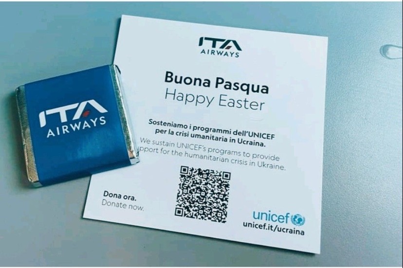 Oltre a questo , anche un cioccolatino. Questo e’ stato il Buona Pasqua di ITA Airways ai suoi passeggeri, anche con un iniziativa solidale.