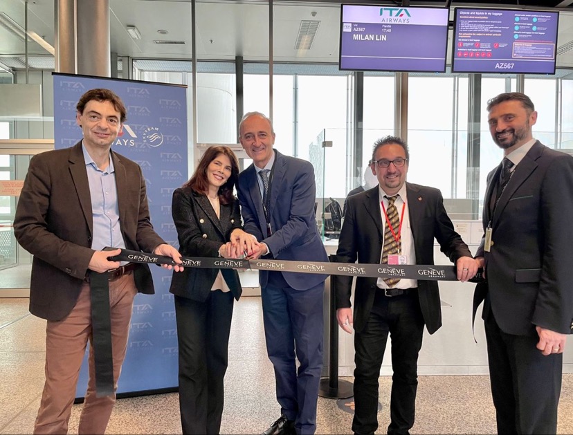 Il taglio del nastro poco piu di due settimane fa a Ginevra per la prima partenza del nuovo collegamento per Milano Linate.