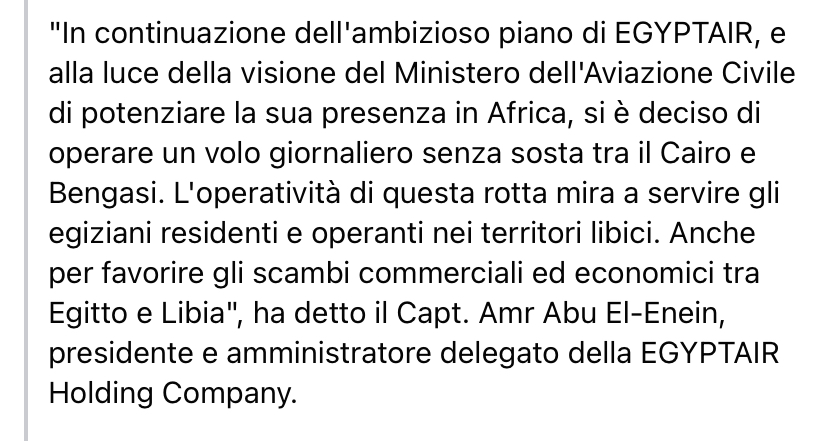 Egyptair ha deciso la ripresa dei voli tra Cairo e Bengasi. Qui in una loro foto si vede un B737/800 , il quale opera il volo.