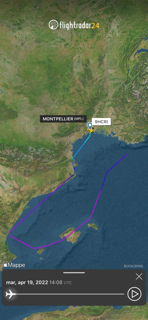 L’aereo sta utilizzando il codice 9H-CRI come codice di chiamata radio.