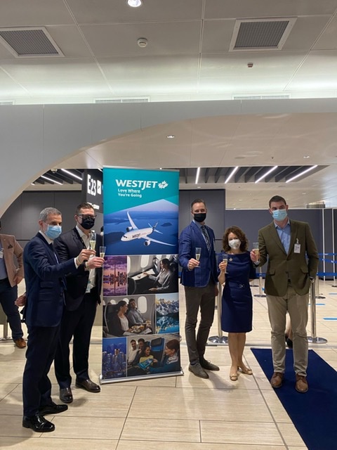 L’equipaggio della compagnia aerea canadese, la quale collega prima bisettimanalmente e poi trisettimanalmente fino all’autunno da Calgary per Roma Fiumicino, un volo nuovo in modo assoluto in quanto e’ la prima volta che le due citta’ sono collegate. A regime i collegamenti sono il venerdi /sabato/domenica dall’Italia. Il giorno prima in partenza dal Canada.