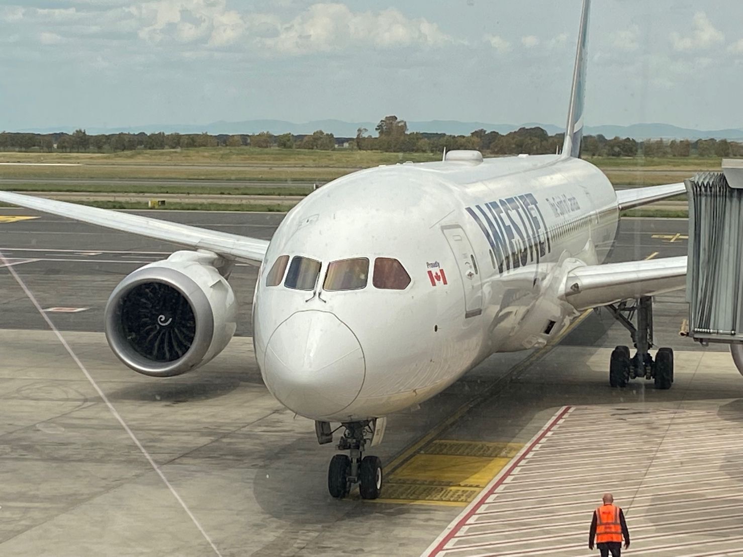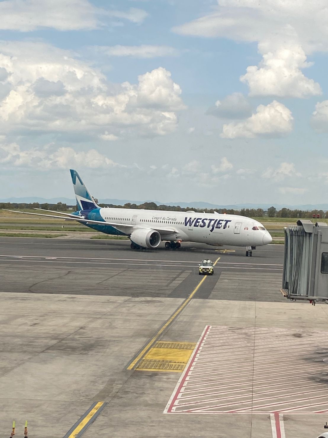 In orario alle 11:55 ha posato le ruote a Roma Fiumicino il primo Boeing 787-9 della WestJet con la registrazione C-GURP.