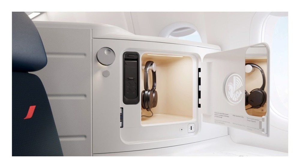 Nella cabina Premium Economy, Air France introduce il suo ultimo modello di tipo reclinabile, già offerto sul suo Airbus A350, migliorandone ulteriormente il comfort. A bordo il passeggero ha 96 cm di spazio per le gambe. Le schiume dei sedili sono state rielaborate e il tessuto a spina di pesce blu navy offre maggiore morbidezza. Lo schienale è reclinabile fino a 124 gradi ed è stato allargato per offrire maggiore privacy. Le cuffie antirumore si adattano armoniosamente per un facile utilizzo in qualsiasi momento durante il viaggio. Le prese USB A e C completano il pacchetto.