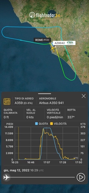 Il primo volo d’addestramento e’ stato l’AZ8042 decollato alle 1858 anziché delle 1600 previste. 31 minuti quelli trascorsi in volo dal decollo all’atterraggio.