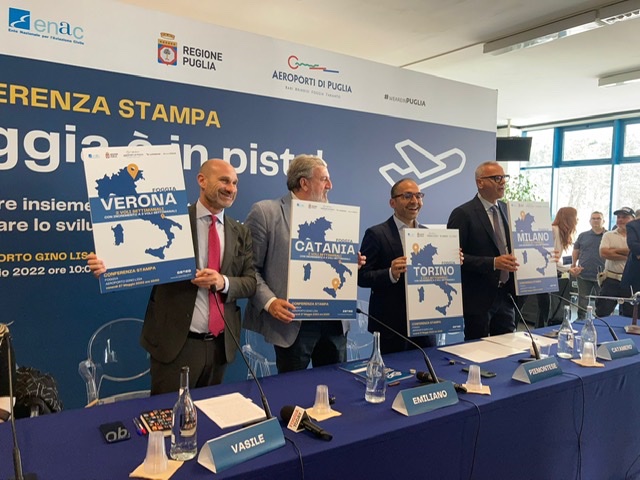 “Noi siamo l’Italia e Foggia è l’Italia – ha dichiarato il Presidente della Regione Puglia, Michele Emiliano – e deve fare la sua parte. In questo momento di difficoltà, la Puglia sta cercando di resistere, anche grazie ad Aeroporti di Puglia, a una condizione economica che sarà difficile anche per il futuro. Ciascuno di noi deve fare la propria parte e non dimenticare che la stagnazione si combatte anche attraverso il turismo. Quest’anno in Puglia arriveranno tanti turisti. L’aeroporto è servente rispetto alla strategia del turismo e del business. Dobbiamo quindi creare una cultura generale, una cultura di ospitalità. La Puglia ha intenzione di tenere insieme turismo e interesse economico. Comprate i biglietti degli aerei e viaggiate. Siccome l’aeroporto va custodito e va fatto crescere, utilizziamo i voli. Quella di oggi, non immaginatela come conquista campanilistica. È uno switch, stiamo girando l’interruttore. Foggia è uno dei giocatori più importanti di una squadra che si chiama Italia e che si chiama Puglia. Quindi, dobbiamo ragionare da Italiani e da Europei. Siccome questo è un momento delicatissimo, mi sforzerò di riempire il vuoto che in questo momento si sente. Lo riempiremo perché è un dovere di tutti. L’importante è collaborare. In tutto il mondo si parla della Puglia e dello sforzo che stiamo facendo con quello che abbiamo. Foggia, lo ripeto – ha concluso Emiliano – è il giocatore che in questo momento che può dare lo sprint in più”.