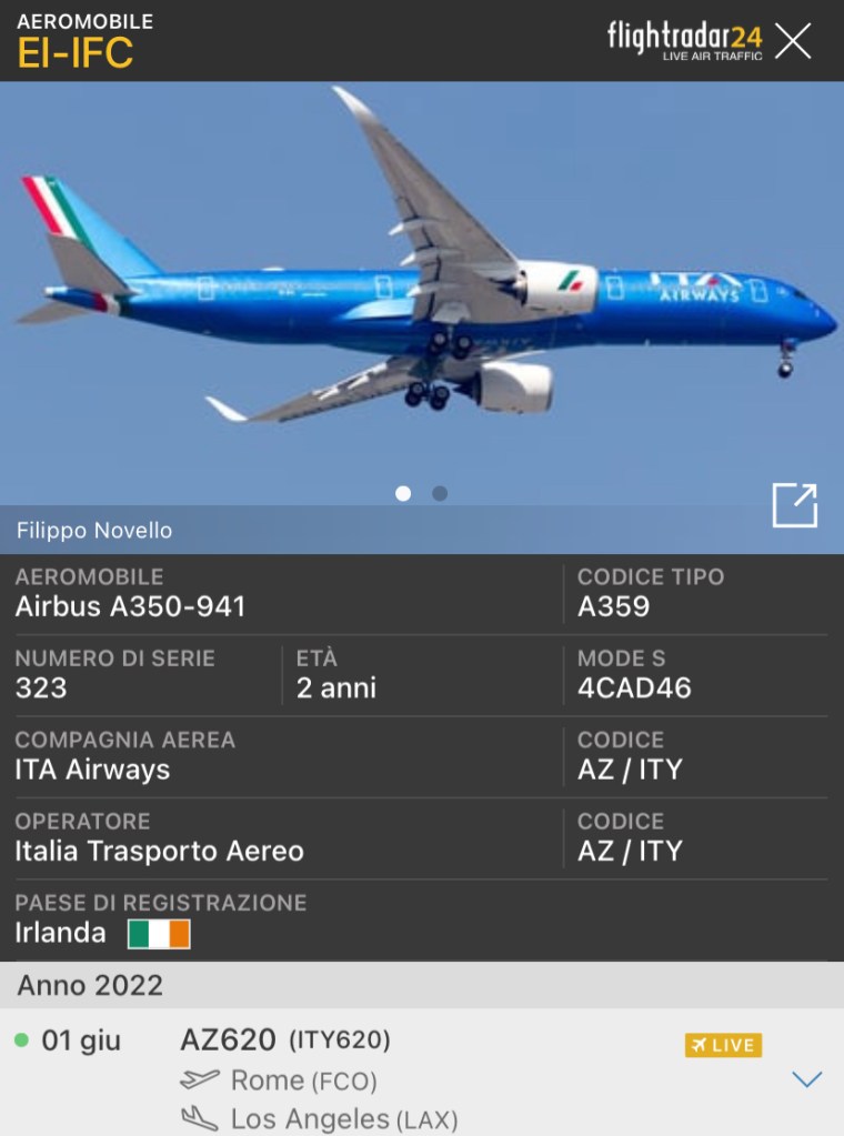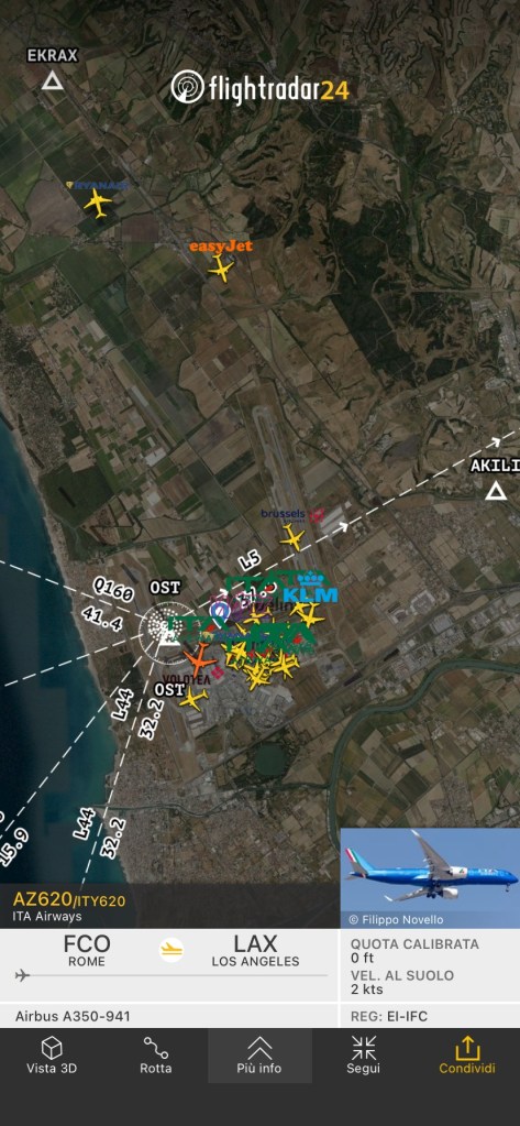 La nuova era del volo a lungo raggio per aerei di nuova generazione, in questo caso l’Airbus 350-900 decolla a brevissimo da Roma Fiumicino. La destinazione scelta per il primo volo e’ la costa ovest degli USA verso Los Angeles.
